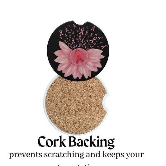 Car Coasters - Breast Cancer Awareness Pink Flowers