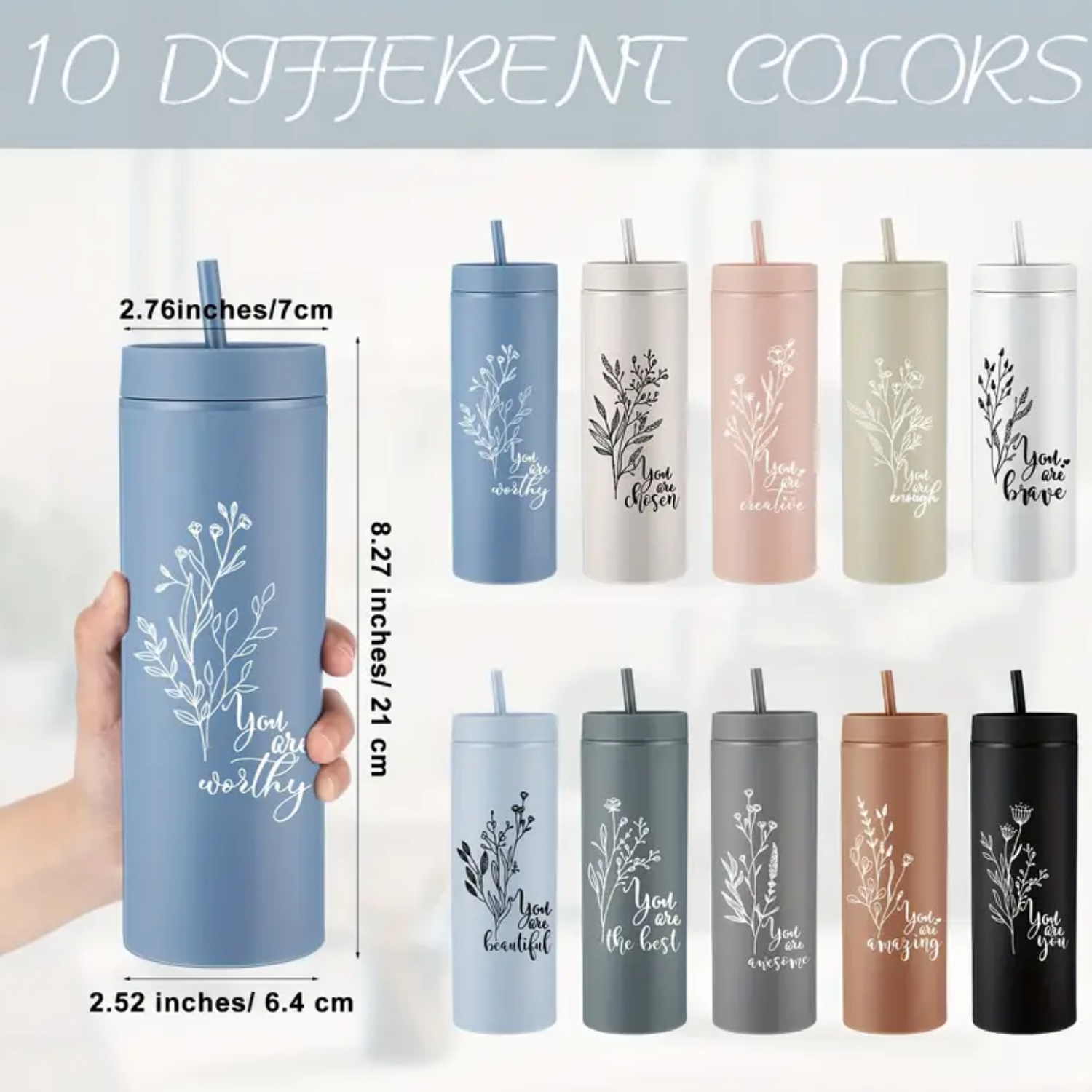16oz Inspirational Skinny Tumbler with Lid and Straw Matte Finish great gift to show appreciation to Coworkers Nurse Teacher Family or Someone Special