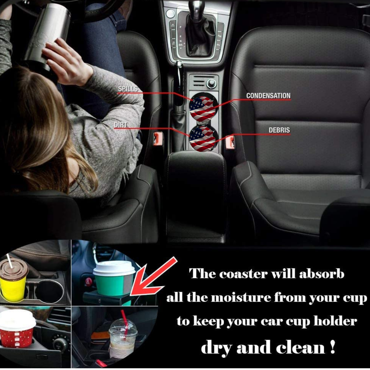 - Absorbent Ceramic Material: Special absorbent ceramic stone material, easily absorb the liquid drops on the outside of the cup, keep your car cup holder dry and clean. You will keep away from the water condensation dripped all over your shirt and onto your lap when you drink cold drinks.